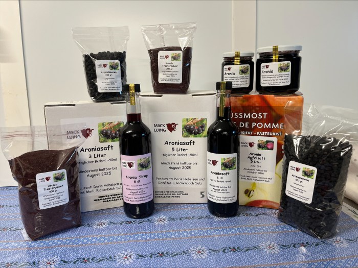 Aus den reifen Aroniabeeren stellen wir folgende Produkte her: