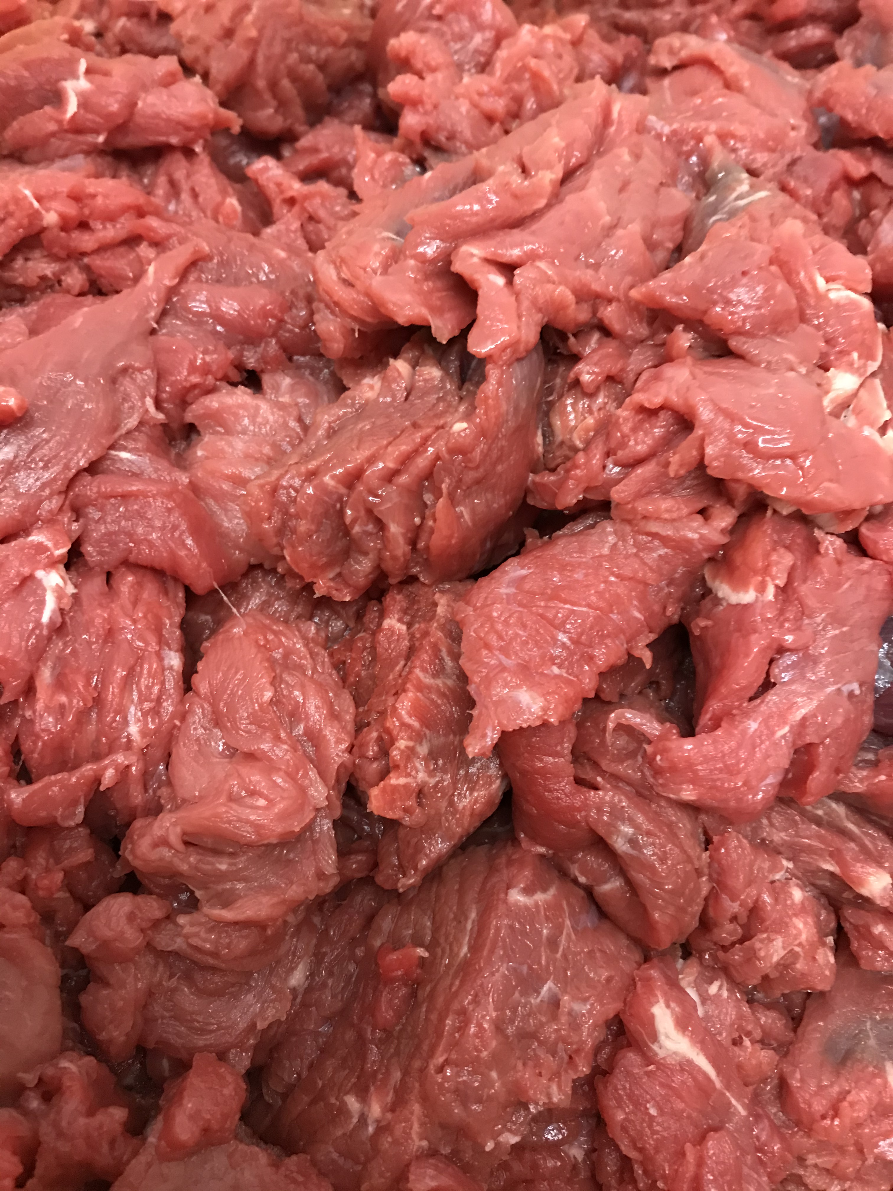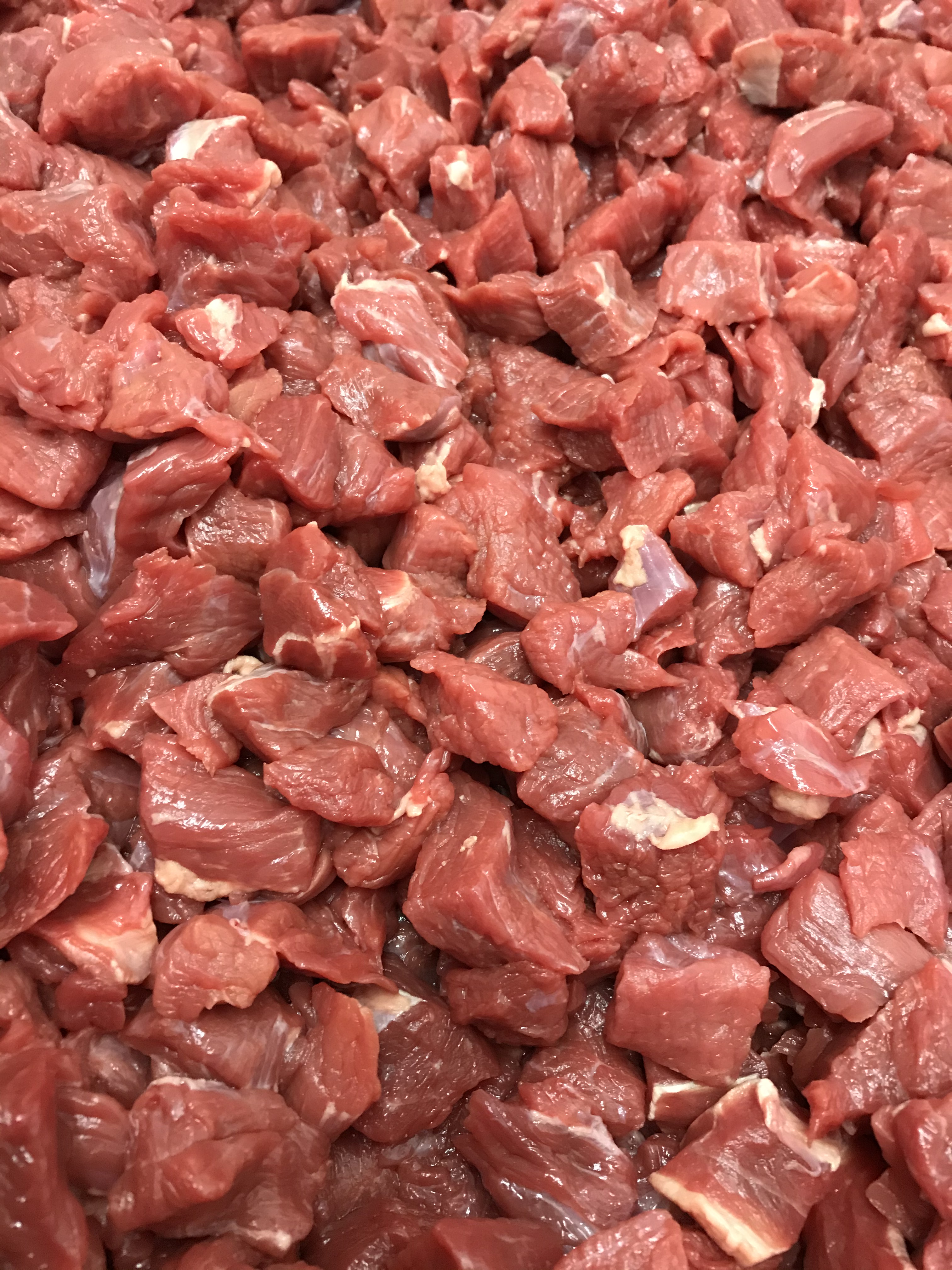 frisches Gulasch vor dem einpacken frisches Geschnetzeltes vor dem einpacken