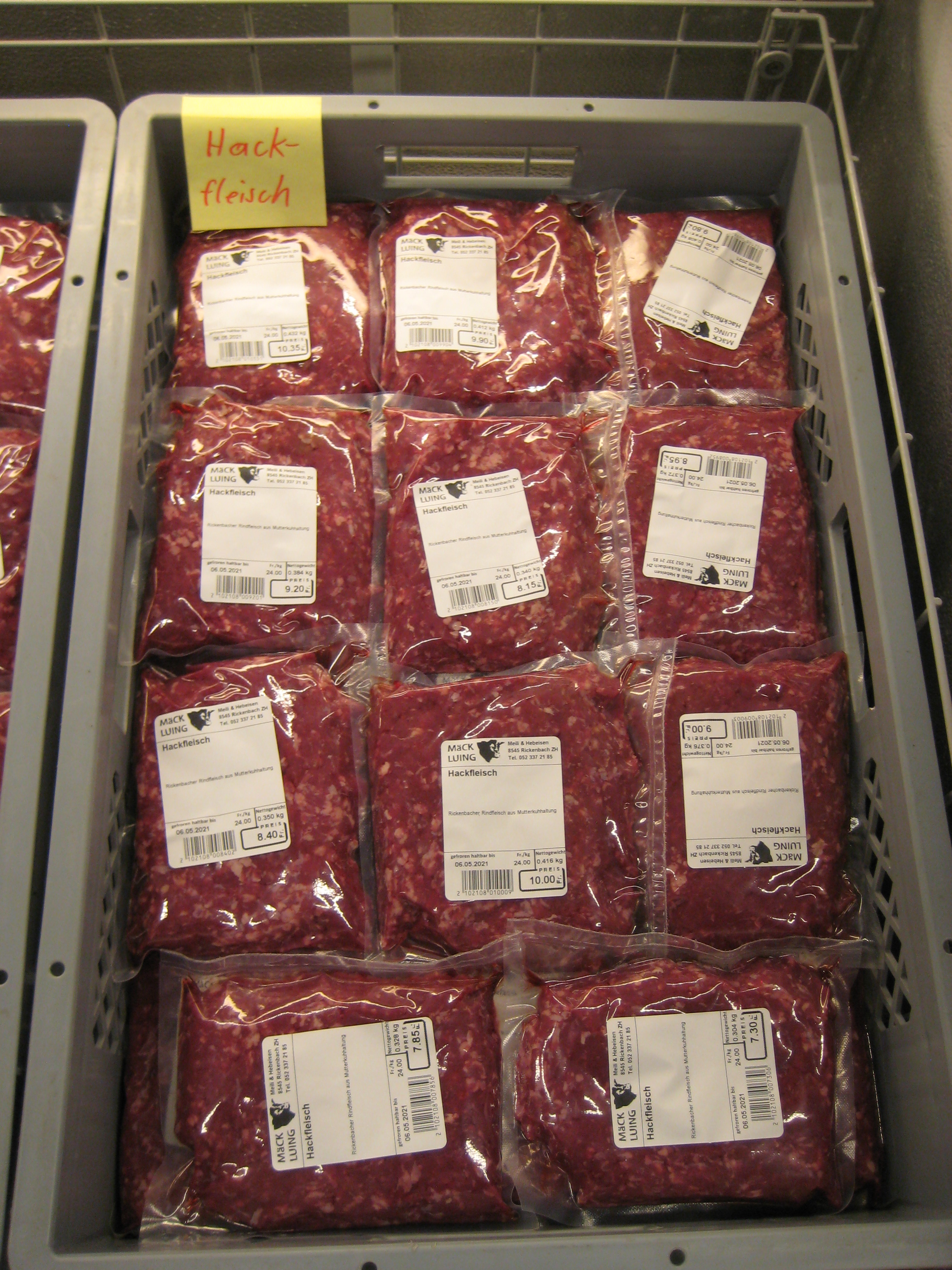 Meistens packen wir das Fleisch tags zuvor frisch ab. Da es beim Metzger schon gelagert wurde, müssen Sie dies zu Hause nicht mehr vor nehmen, sondern können es, bei nicht Gebrauch in den nächsten paar Tagen, bald einfrieren.
