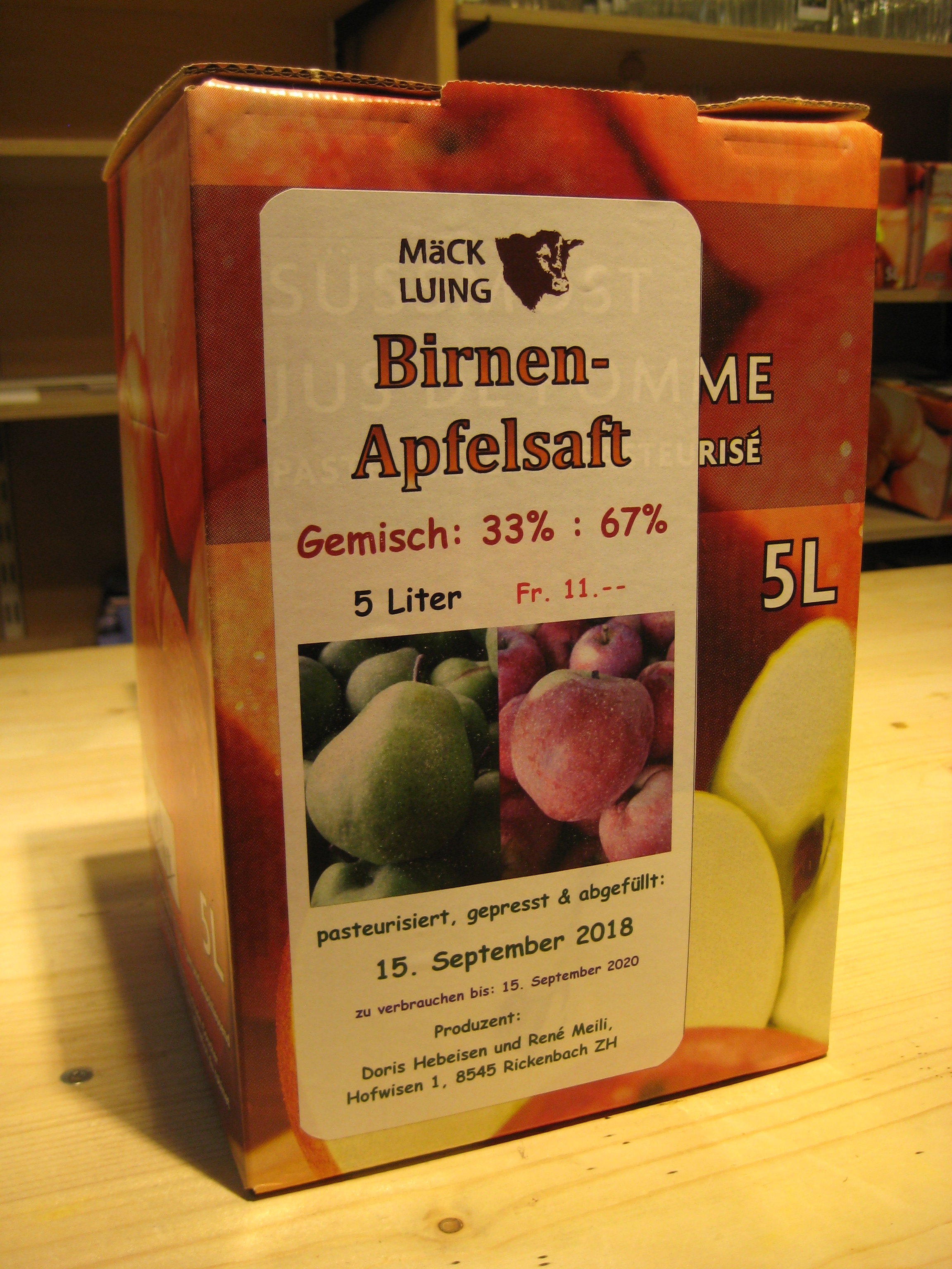 Gemischt mit Birnen bieten wir einen Birnen-Apfelmost an. Im Verhältnis 1:2 ist die Birne schon ziemlich dominant, was viele Leute mögen.